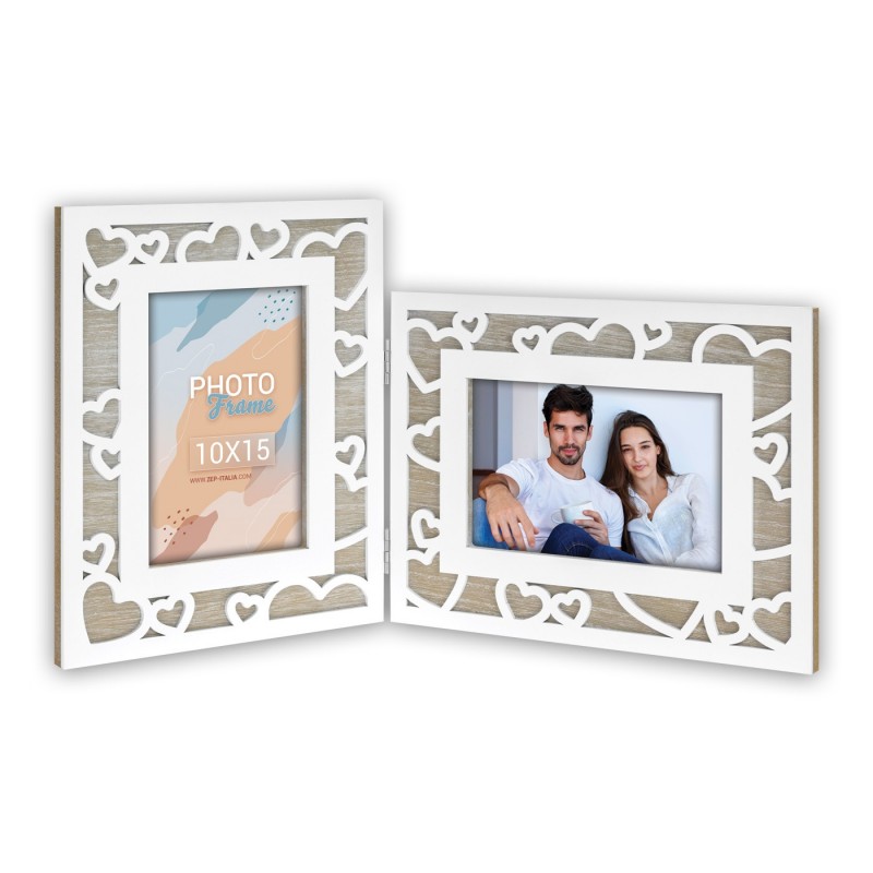 Drveni okvir bijele i natur boje s motivom srca.